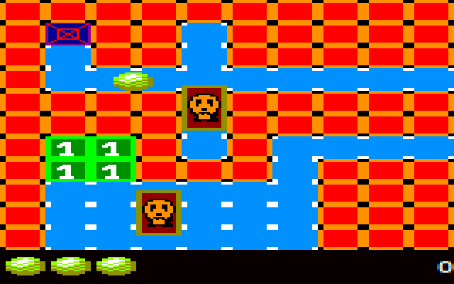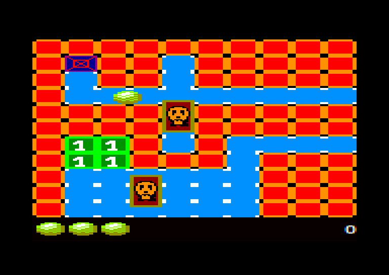 L'image fait maintenant 640 par 400px pour représenter ce qu'il est possible de voir sur un écran CPC. Je suis à l’échelle 4:2 pour les pixels. Sur cet exemple, c'est pas mal déformé quand même, il faut donc à la base très certainement composer ses graphismes en connaissance de cause (nombre de pixels par point affichés suivant le mode). Peut être pour ce type de jeu, il aurait mieux valu de rester en mode 1 pour avoir un point de forme carrée et non ''déformé''.