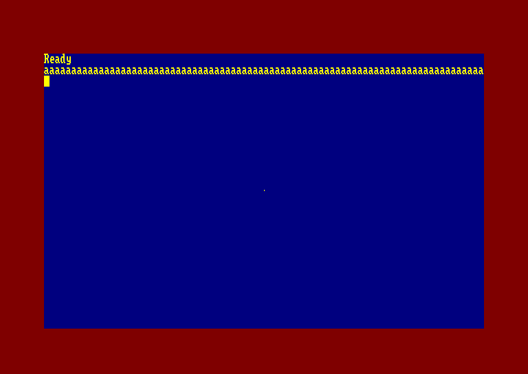 Capture d'écran du 6128, vous pouvez voir la surface en bleu, et j'ai changé la couleur de la bordure en rouge. - L'Amstrad permet d'avoir 3 modes d'affichage avec leur limitation de couleur. - La surface « en bleu » est de 640px par 400px sur un Amstrad. - Il faut faire la différence entre un pixel, un point affiché et un caractère à l'écran. Le pixel est le plus petit élément affiché à l'écran. Un point est le plus petit élément que vous pouvez afficher à l'écran. Et un caractère est une lettre, un chiffre, un signe affiché à l'écran. Le Mode 0 Le Mode 0 permet d'afficher 16 couleurs simultanément à l'écran (sans compter la couleur de la bordure). Il permet d'afficher 20 caractères (colonne) en horizontal et 25 en vertical. Un point placé sur l'écran fait 4 pixels de largeur et 2 pixels de hauteur. Ce qui fait 160 x 200 points sur la surface. La taille d'un caractères fait 32px sur 16px. (8 points sur 8.)
